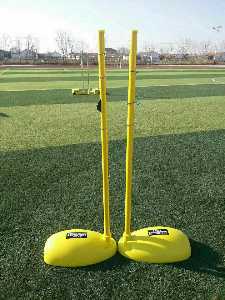 對于網(wǎng)柱的規(guī)定是:“網(wǎng)柱架設(shè)在兩條邊線外0.5-1米處,高2.55米,最好可以調(diào)節(jié)高度。支架球網(wǎng)的網(wǎng)柱為兩根。網(wǎng)柱應(yīng)光滑并無拉鏈,一切危險設(shè)施或障礙物都必須排除?!?/p>