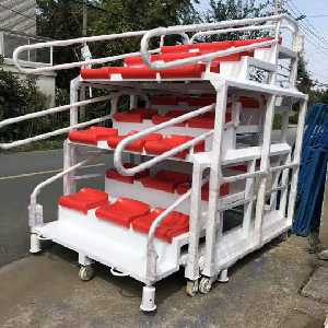 注塑看臺椅: 采用進口聚乙烯,中空吹塑一次成型工藝,外觀飽滿、線條流暢、堅固耐用、耐候性強、極易清洗、使用廣泛??稍谝话愕鼗虾唵巍⒖焖侔惭b;固定件堅固耐用,適合體育場館日常座椅、領(lǐng)先看臺座椅。 特點: 設(shè)計新穎,工藝精細,使用壽命長、耐沖擊等。 材料優(yōu)異:注塑椅采用進口高度聚乙烯制成,國際行業(yè)標準之專用塑料、顏料、UV吸收劑、抗氧化劑均可磨損和褪色。 強度極佳:符合國際標準,力學(xué)性能超國標。 性能卓越:選用高強度防潮聚乙烯及特殊自熄滅樹脂注塑而成,經(jīng)耐高、低溫及人工加速老化試驗,使用壽命長。 移動看臺椅: 引進國外先進技術(shù),設(shè)計研制的活動看臺椅,結(jié)構(gòu)合理強度可靠,移動伸拉輕便,依靠重力偏心自動鎖死定位,收藏依靠自動解鎖結(jié)構(gòu)解鎖便捷可靠。結(jié)構(gòu)簡單,由鋁合金材料制作,具有體輕,耐蝕,強度、剛度高,無毒,耐高溫,防火性強等特性,使用壽命長,不怕潮,表面光滑,易清洗,無污染的生產(chǎn)過程。符合現(xiàn)今綠色環(huán)保的要求,模塊化設(shè)計,使安裝、維修簡單,看臺椅有高靠背、低靠背和平板三種選擇,滿足各種場合需要。 移動性能:所有的部件可以組合,階梯結(jié)構(gòu),構(gòu)件通過橡皮套滑輪固定。 占地空間?。嚎磁_不使用時,由于重量輕,很容易將梯級構(gòu)件通過旋轉(zhuǎn)從橫向位置轉(zhuǎn)到垂直位置。 模塊化:移動看臺椅可隨意組合,拆裝,滿足各種場地需求,同樣可以添加其他功能部件。 快速拼裝看臺椅: 快速拼裝看臺是一種新型的臨時用看臺系統(tǒng),可隨意組合。架體單元采用菊花扣腳手架結(jié)構(gòu),在成熟的48型菊花扣式腳手架結(jié)構(gòu)上組合自主開發(fā)的層架結(jié)構(gòu),根據(jù)要求組合成多級模數(shù)臨時看臺。規(guī)格為370mm(層高)*750mm(縱深)??纱钆渥⑺芸磁_椅,安裝簡易方便。層架采用焊接整體模塊式,可以通過互換通用,優(yōu)質(zhì)碳素防滑花紋剛踏板,每平方允許承350kg。臨時看臺最高層可達30層,高度達11米,所有金屬構(gòu)件均經(jīng)鍍鋅防銹處理。 特點:結(jié)構(gòu)少,搭建及拆卸方便,基本結(jié)構(gòu)及專用部件全部標準模塊化;單模塊式結(jié)構(gòu)每塊重量最大不超過25KG,兩個工人就可以輕易安裝。 接頭結(jié)構(gòu)合理,作業(yè)容易,輕巧簡便。承載能力大,結(jié)構(gòu)強度高,整體穩(wěn)定,安全可靠。采用獨立楔子穿插自鎖機構(gòu)。插件有自鎖功能,可以按下插銷進行鎖定或拔下進行拆卸。構(gòu)件系列標準化,便于運輸和管理。 禮堂看臺椅: 采用電動驅(qū)動方式,操作時有手控裝置,又有遙控裝置。 背:聚氨酯定型海綿外覆高級座椅面料,內(nèi)襯膠合板。外殼優(yōu)質(zhì)膠合板模壓成型。 面料:內(nèi)襯膠合板。 底部結(jié)構(gòu)采用先進的力學(xué)支撐系統(tǒng),充分保證靜、動負載要求。 支撐大腳采用機械式同步反饋裝置或其他類似裝置,保證看臺同步伸縮,避免活動看臺定向跑偏。 看臺結(jié)構(gòu)的材質(zhì)和材料已做防腐、防潮、防銹的表面處理。 看臺前言外表應(yīng)美觀,且具有防滑措施,避免觀眾上下時滑倒。 看臺椅翻放式采用手動或電動,彈簧鋼板壓偏軸向回彈設(shè)計,復(fù)位準確,低噪音。 看臺兩側(cè)有防護措施,通過椅面自動恢復(fù),收起時夾角為20%。 扶手,優(yōu)質(zhì)ABS料,與座面、靠背同時舉落,更加持久耐用,采用特殊設(shè)計的平臺輪面,以保護木制或合成地板表面。