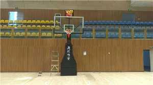 室內(nèi)槍式電動(dòng)液壓籃球架安裝完成,帶保護(hù)套,帶24秒