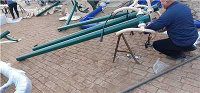 正在緊張的組裝戶外健身路徑的配件以及調(diào)試